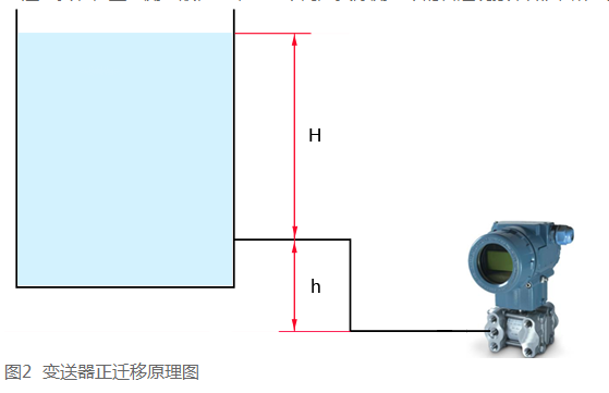 變送器安裝位置與測量液位水平高度不同是實際測量中的普遍現(xiàn)象,如圖2所示為一種遷移形式。