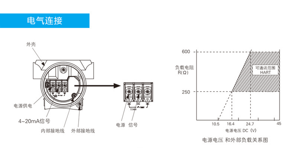 零點(diǎn)與量程可用本機(jī)量程和零點(diǎn)按鈕調(diào)整,或用HART手持器遠(yuǎn)程調(diào)整