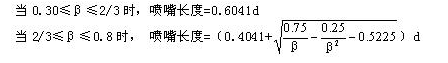 標準噴嘴由垂直于軸線的入口平面部分A、圓弧形曲面B和C所構成的入口收縮部分、圓筒形喉部E和為防止邊緣損傷所需的保護槽F組成,其取壓方式上游采用角接取壓,下游可按角接取壓設置,也可設置與較遠的下游處。噴嘴總長度: