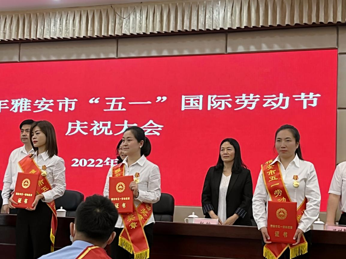 雅安文旅集團黨委副書記、藝悅公司執(zhí)行董事殷麗華榮獲“雅安市五一勞動獎?wù)隆保虐矏偦频旯芾碛邢薰狙虐裁身斏交ㄩg堂·茶馬司被命名為“雅安市工人先鋒號”