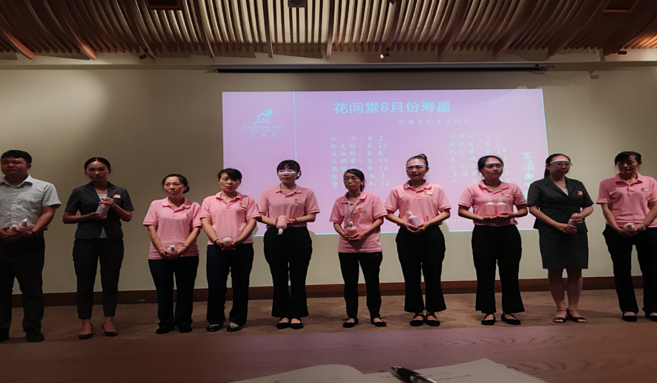 8月27日下午,雅安蜀天旅游公司花間堂酒店召開全體員工大會,酒店管理方派駐總經(jīng)理?xiàng)钪懈鞒直敬螘h。會議上總經(jīng)理?xiàng)钪懈硎?,?jiān)決擁護(hù)蜀天旅游公司的各項(xiàng)任命以及會議精神,堅(jiān)決執(zhí)行。并向8月生日員工發(fā)放生日禮品,向壽星們表示祝賀,希望在未來的工作中,大家能更加熱愛自己的崗位,熱愛酒店,為公司的成長貢獻(xiàn)自己的一份力量。通過對酒店2019年8月工作的回顧總結(jié),激勵鞭策全體員工要增強(qiáng)自信,振奮精神,發(fā)揚(yáng)成績,整改問題,并根據(jù)蜀天旅游公司下達(dá)的管理目標(biāo)、經(jīng)營指標(biāo),制定具體措施。2019年下半年酒店將面臨新的挑戰(zhàn),在新的市場形勢下,將以“效益、服務(wù)、成本、創(chuàng)新”為方針,全方位提升服務(wù)質(zhì)量、加大銷售力度、嚴(yán)格控制成本、創(chuàng)新產(chǎn)品、創(chuàng)新營銷手段、提高經(jīng)濟(jì)效益,堅(jiān)持不懈地抓好各項(xiàng)工作貫徹落實(shí),進(jìn)一步實(shí)現(xiàn)酒店質(zhì)的飛躍。