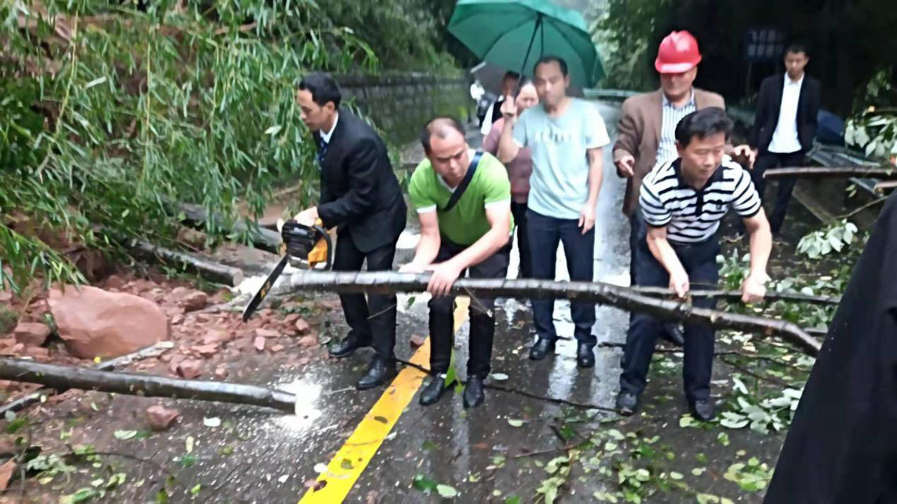 9月14日,蒙頂山旅游公司上班員工到達(dá)塌方地點(diǎn),公司負(fù)責(zé)人立即組織道路搶通。從發(fā)現(xiàn)塌方到清除路障,僅用了不到30分鐘的時(shí)間,確保了蒙頂山旅游公路的暢通。