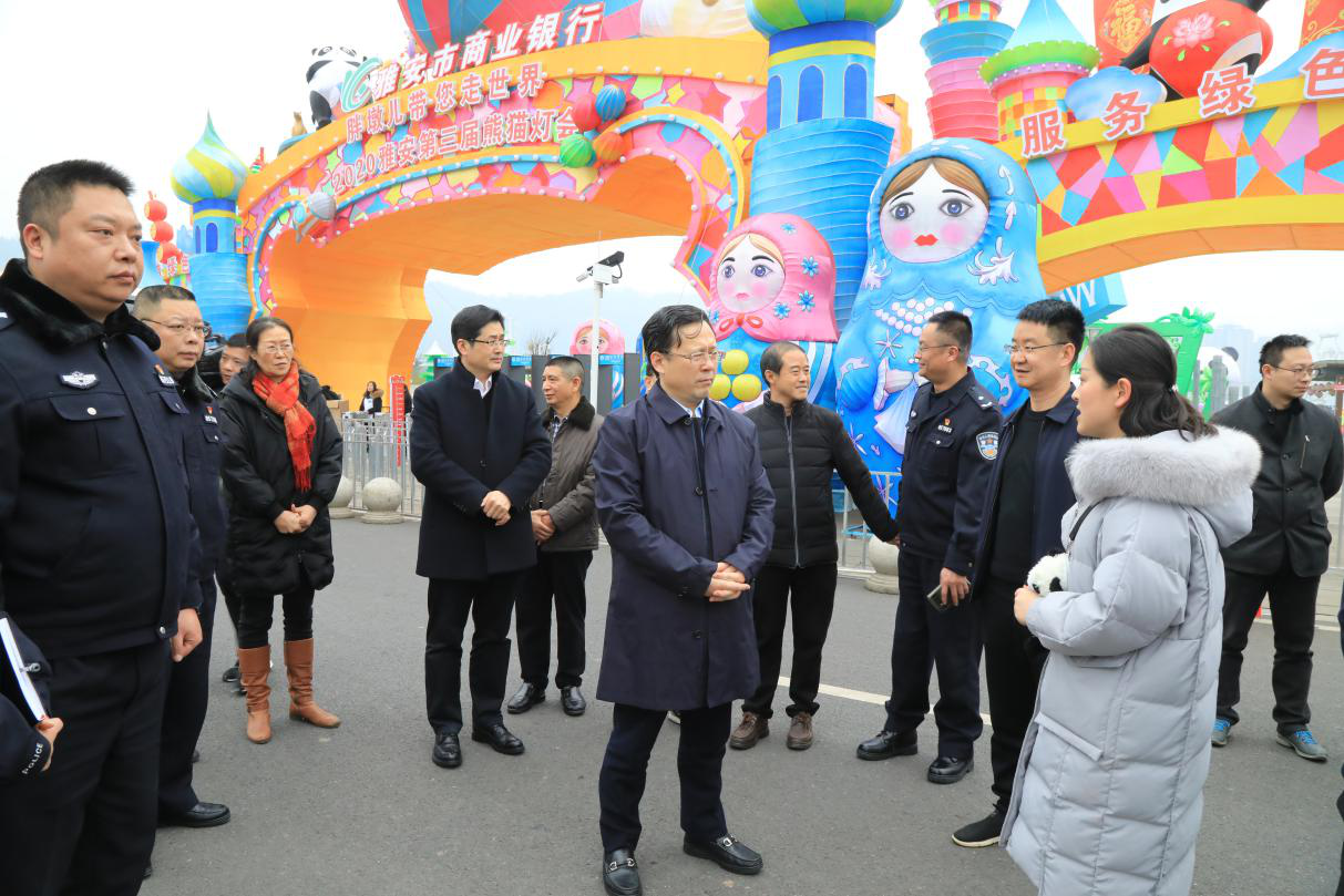 1月22日,市委副書記、市長鄒瑾率隊(duì)赴2020雅安第三屆熊貓燈會(huì)現(xiàn)場看望慰問熊貓燈會(huì)現(xiàn)場值班人員,對公安、電力、消防等指揮部成員單位前期工作表示肯定,副市長茍乙權(quán)、市政府秘書長李陽軍陪同檢查。