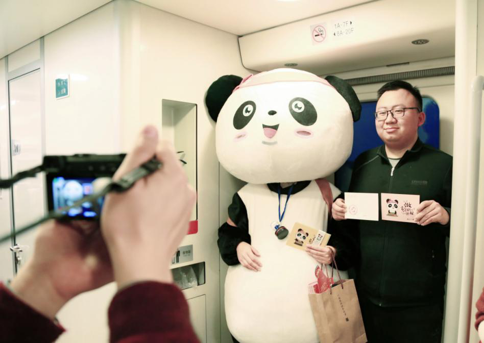 二是制作燈會(huì)主題明信片。提前定制雅安城市吉祥物大熊貓雅雅、安安大型人偶,走進(jìn)車廂向乘客發(fā)出燈會(huì)邀請(qǐng)函,首次推出本屆燈會(huì)的周邊文創(chuàng)產(chǎn)品800張,暨主題明信片“坐動(dòng)車回雅安”和“不會(huì)做貢茶的滾滾不是真熊貓”,加蓋燈會(huì)專屬紀(jì)念章,宣傳本屆燈會(huì)舉辦時(shí)間、地點(diǎn)和亮點(diǎn),與乘客互動(dòng)分享1000余人次。