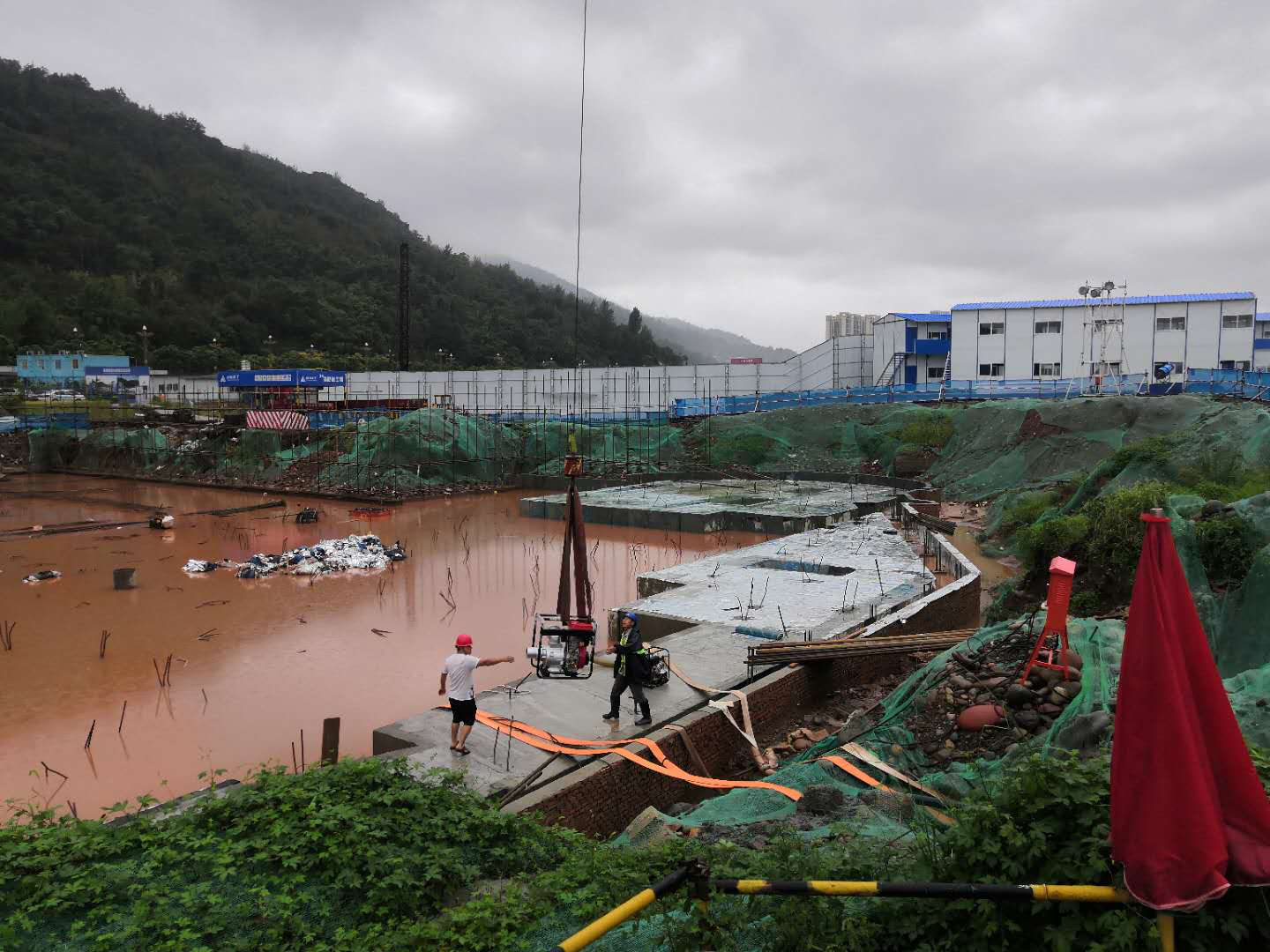 8月10日至18日,我市遭受持續(xù)強(qiáng)降雨,8.10暴雨及8.17暴雨致雅安熊貓會展博覽館項目受災(zāi)嚴(yán)重,影響項目正常推進(jìn)。雅安文旅會展有限公司應(yīng)急救援領(lǐng)導(dǎo)小組迅速反應(yīng),第一時間啟動應(yīng)急預(yù)案,靠前作戰(zhàn),全力開展搶險救災(zāi)工作,及時有效控制險情,爭分奪秒加快恢復(fù)生產(chǎn)。