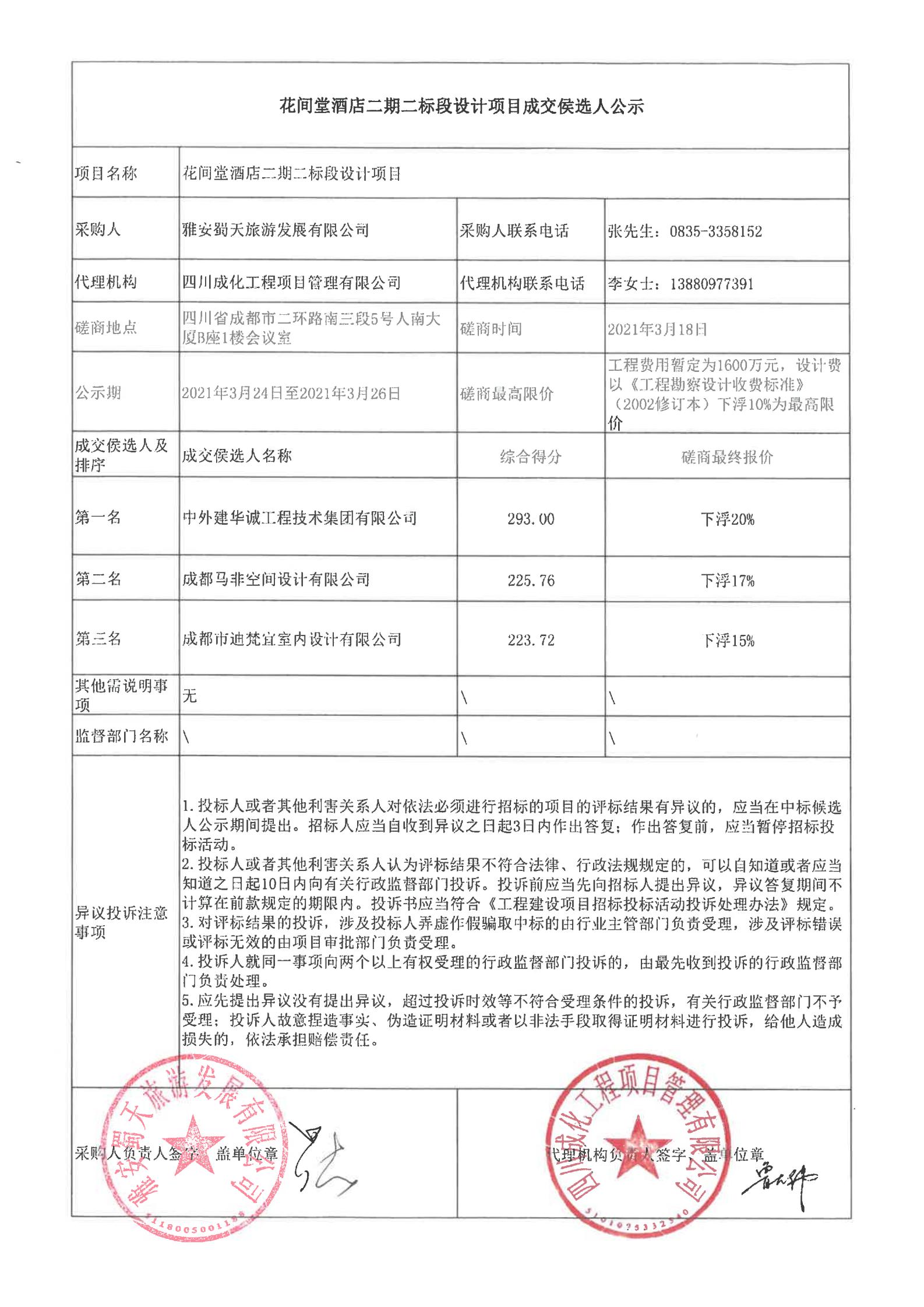 花間堂酒店二期二標(biāo)段設(shè)計(jì)項(xiàng)目成交候選人公示