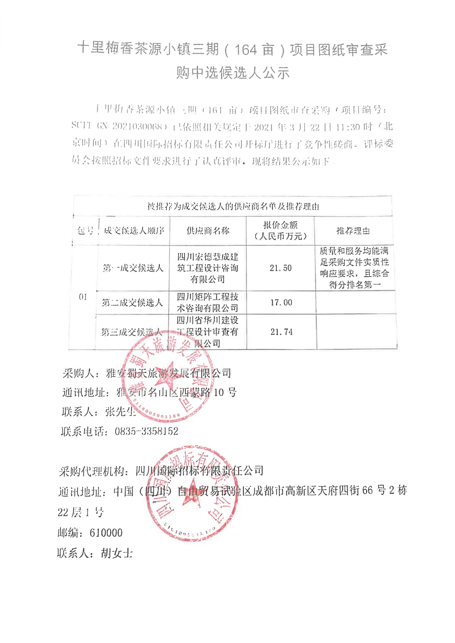 十里梅香茶源小鎮(zhèn)三期(164畝)圖紙審查采購(gòu)中選候選人公示