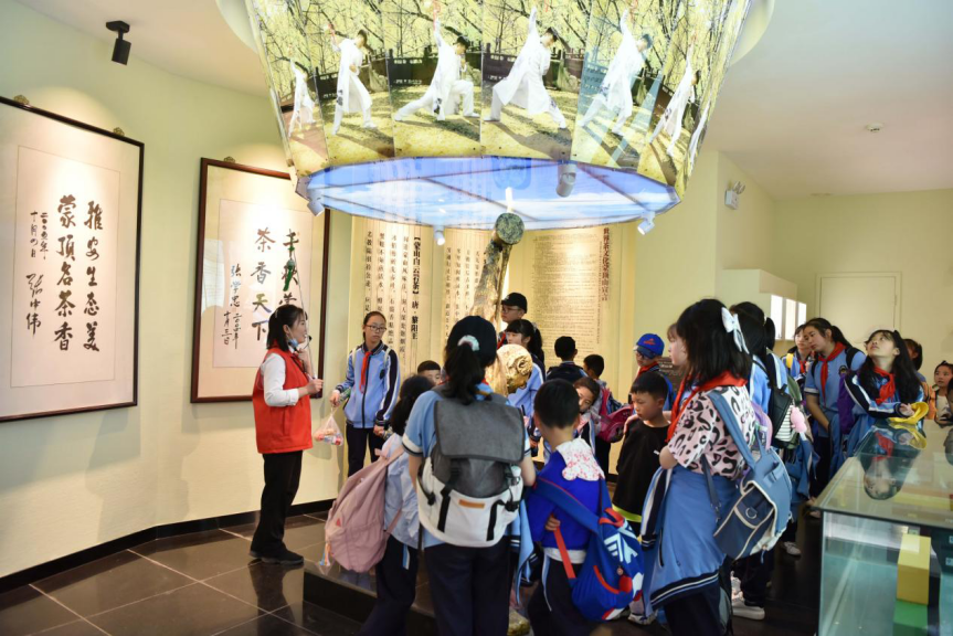 此外,成實(shí)外的同學(xué)們還跟著研學(xué)導(dǎo)師的腳步,參觀世界茶文化博物館,尋訪千年古茶樹(shù),探尋甘露井,駐足皇茶園,他們?cè)诿身斏絻A聽(tīng)千年茶文化遺跡的歷史回聲。