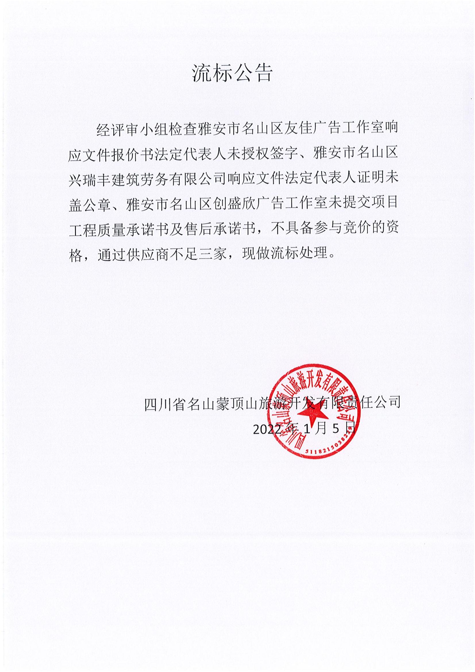 蒙頂山銀杏餐廳柴火雞長廊及銀杏樹下平臺設(shè)施改造提升項目供應(yīng)商資格審查流標(biāo)公告