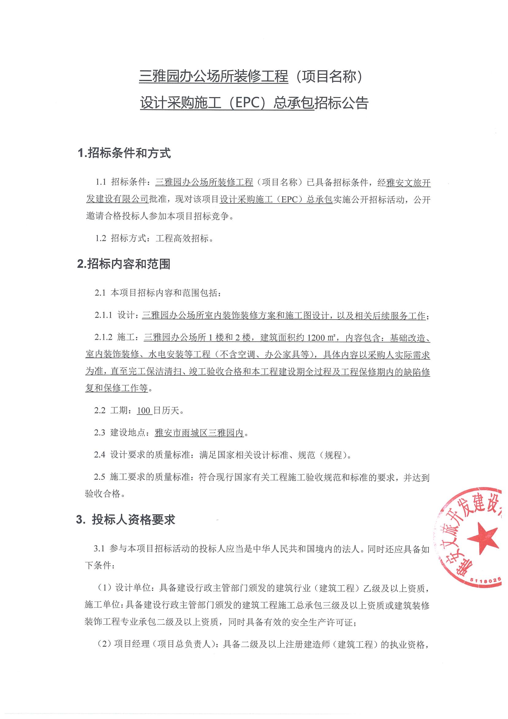 三雅園辦公場(chǎng)所裝修工程招標(biāo)公告