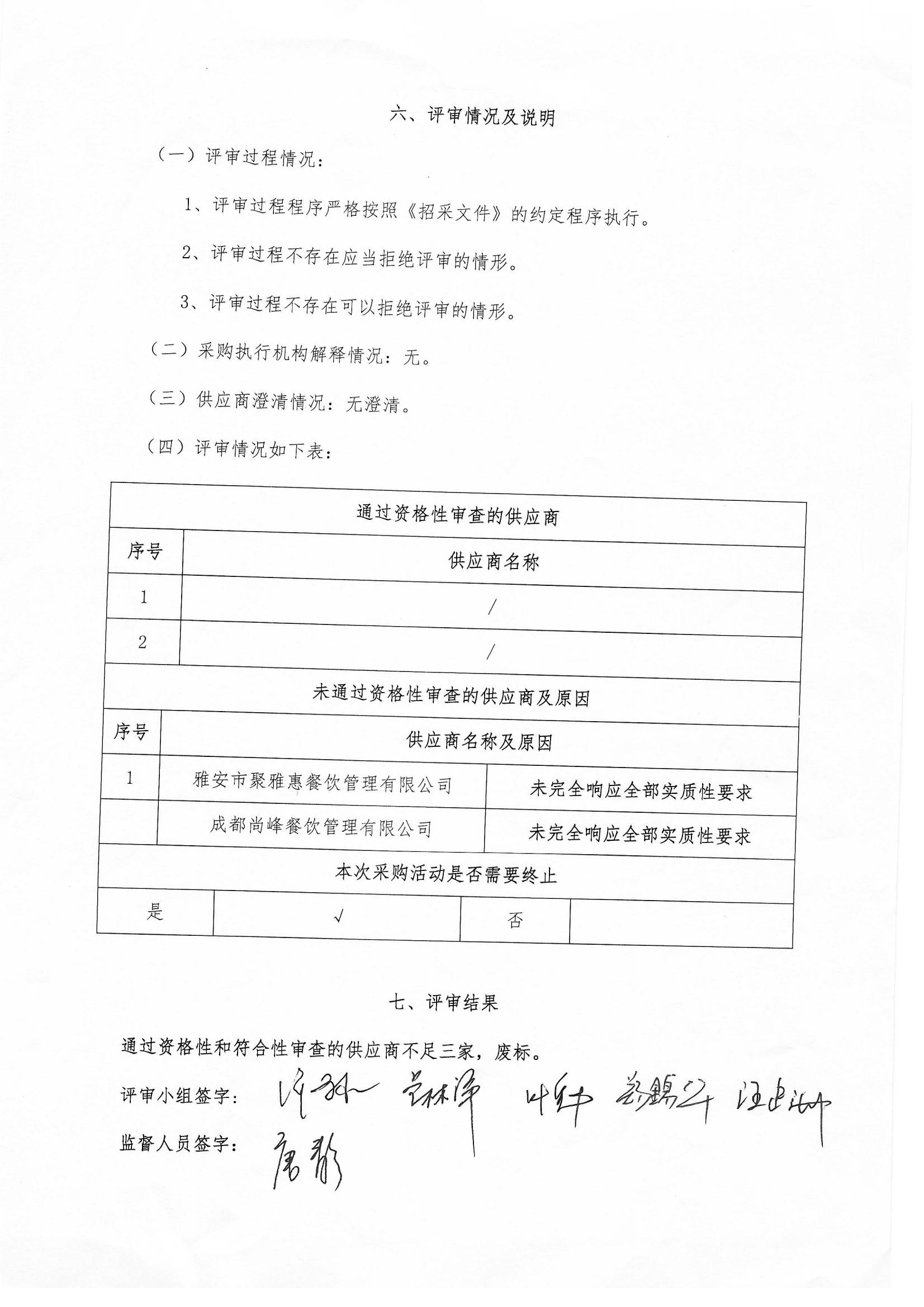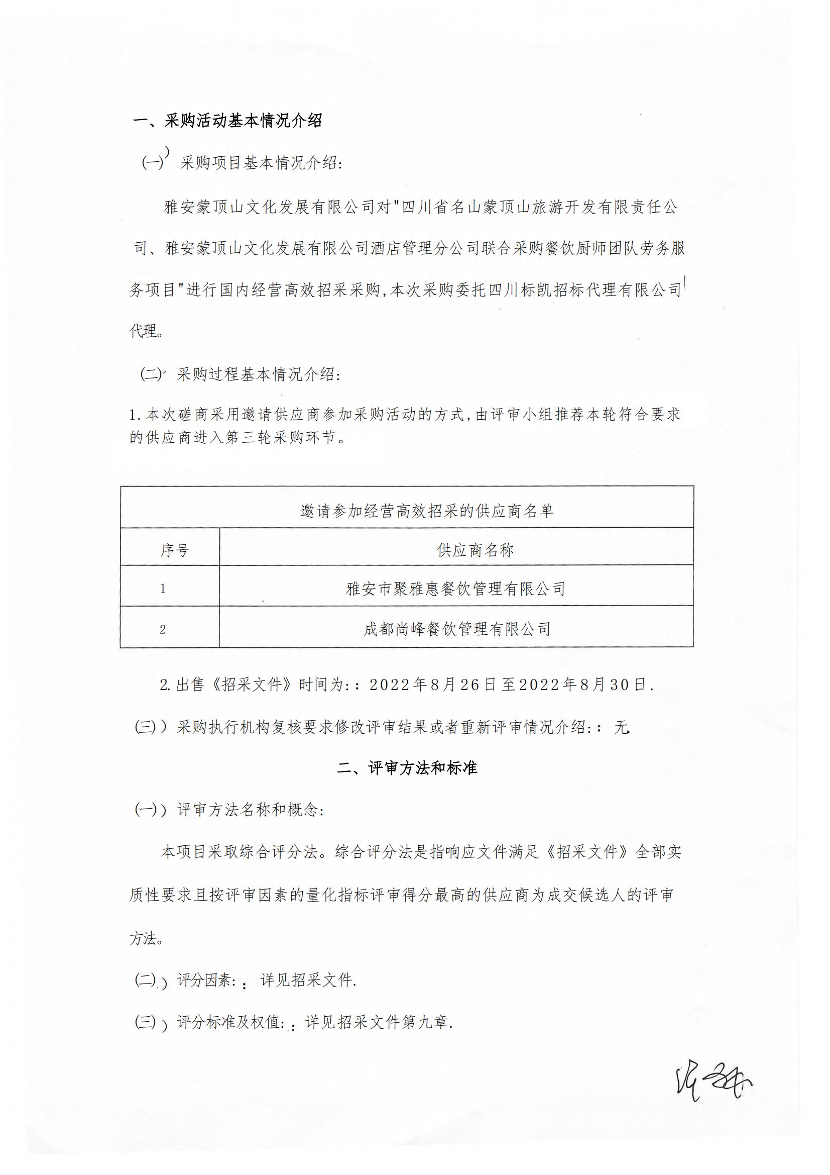 雅安蒙頂山文化發(fā)展有限公司酒店管理分公司聯(lián)合采購餐飲廚師團隊勞務服務項目評審報告