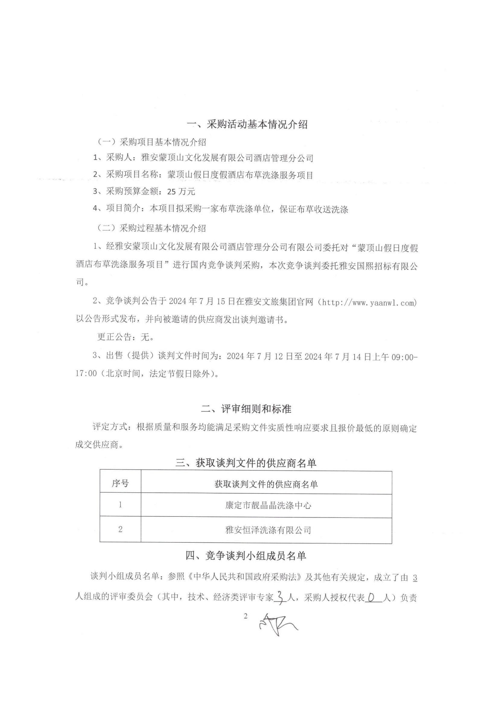 蒙頂山假日度假酒店布草洗滌服務項目評審報告