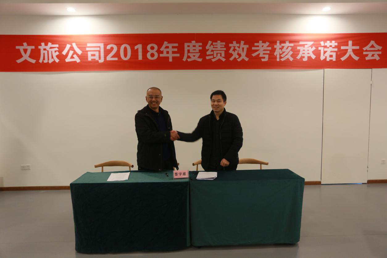 會上,文旅公司3家全資子公司文旅置地、藝悅文創(chuàng)、藝峰旅游負(fù)責(zé)人、總公司8個部門負(fù)責(zé)人以及蜀天旅游、蒙頂山旅游公司負(fù)責(zé)人,依次向大會作年度工作目標(biāo)承諾,明確各項(xiàng)經(jīng)營指標(biāo)、保障目標(biāo),并與公司領(lǐng)導(dǎo)簽訂2018年度績效考核責(zé)任書。