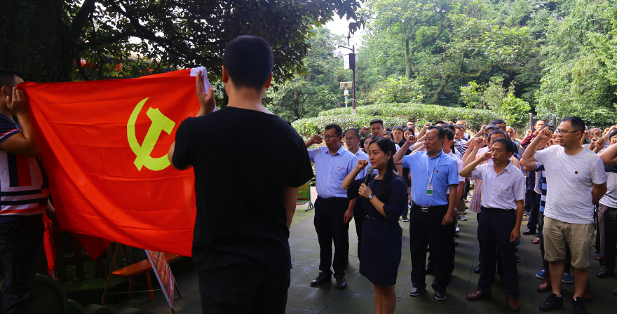 活動中,城鄉(xiāng)黨員步行攀登蒙頂山,尋訪古茶樹、探訪甘露井、瀏覽皇茶園、拜謁茶神,了解家鄉(xiāng)、認識雅安。在紅軍百丈關(guān)戰(zhàn)役紀念館外,由文旅公司支部書記殷麗華帶領(lǐng)90多名黨員重溫入黨誓詞,黨員干部鏗鏘的語調(diào),誠摯的心聲,既是莊嚴的承諾,也是每一名黨員的奮斗目標。